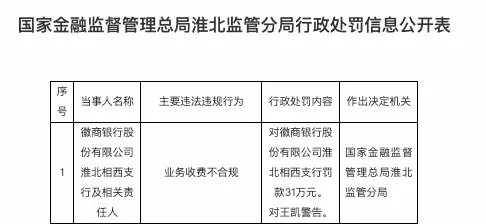 徽商银行淮北相西支行被罚款31万元 因业务收费 球哥 • 2025-12-16 10:44 • 阅读 12月15日,据国家金融监督管理总局官网消息,徽商银行淮北相西支行因业务收费不合规被罚款31万元,相关责任人王凯受到警告。 文章来源互联网。发布者:球哥,转转请注明出处:/a/yingxiao/368.html